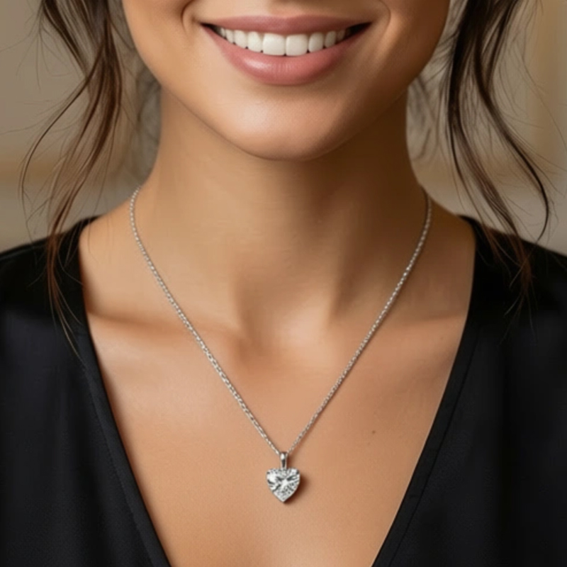 An elegant heart-shaped diamond pendant crafted in 18K white or yellow gold, suspended from a refined matching gold chain. A timeless design that highlights the brilliance of the diamond with understated elegance.