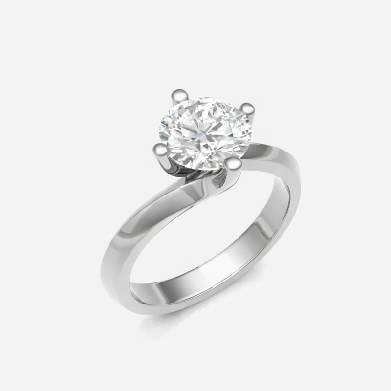 The MyAntwerpDiamonds Twist Ring features a refined four-prong setting with an elegant twisted band and a timeless classic head. Crafted in solid 18K gold or platinum, it is perfectly suited for diamonds under 0.80 ct.