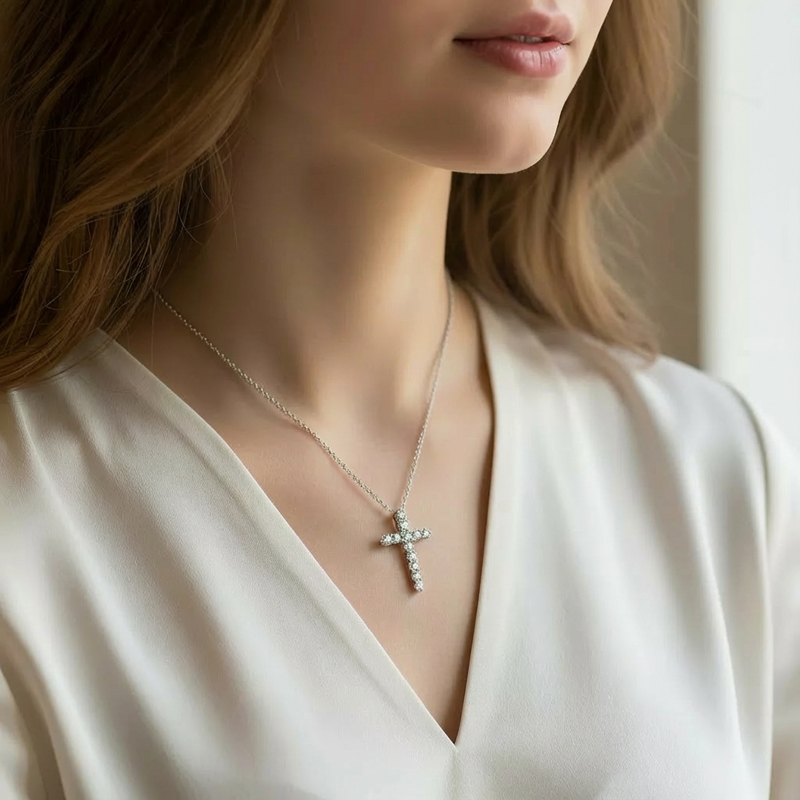 With its classic cross form and refined diamond setting, the Diamond Cross Pendant Necklace transitions effortlessly from day to evening. It is a timeless piece for those who appreciate meaningful design, fine materials, and understated luxury.