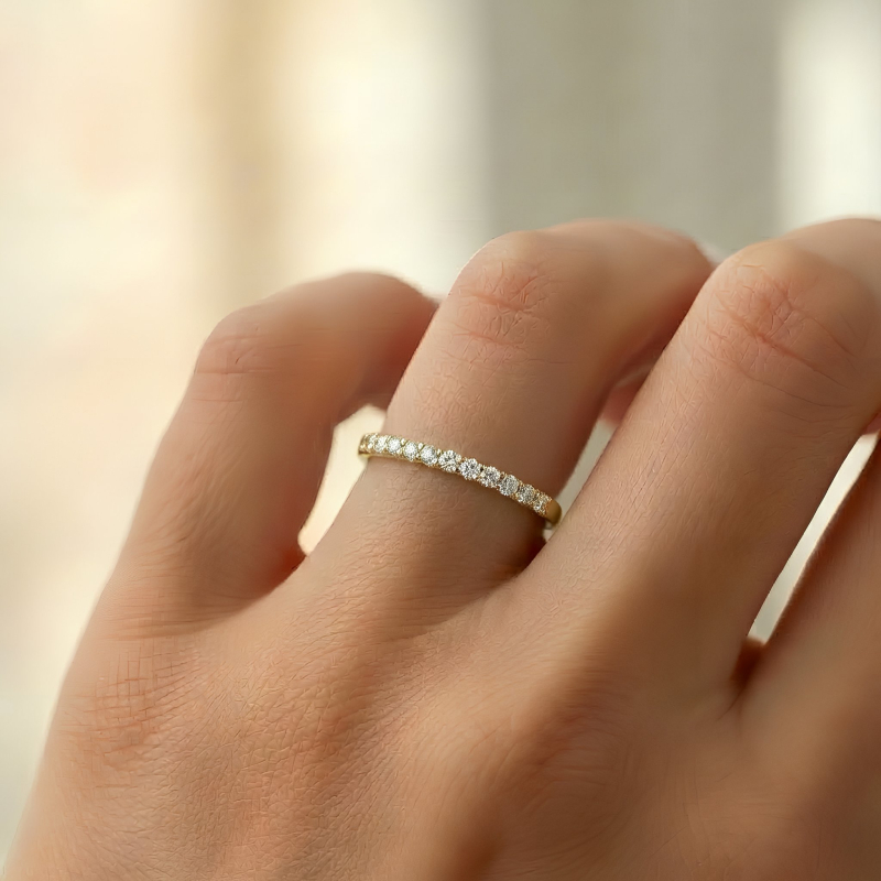 Whether you’re looking for the perfect accessory for a special occasion or a luxurious addition to your everyday attire, our Halfset Signature Diamond Eternity Ring offers a blend of elegance, versatility, and superior craftsmanship. The sleek design and high-quality diamonds make it an ideal choice for those who appreciate the finer things in life. Ultimately, elevate your style and make a lasting impression with our stunning eternity ring, adding a touch of sophistication to any ensemble.