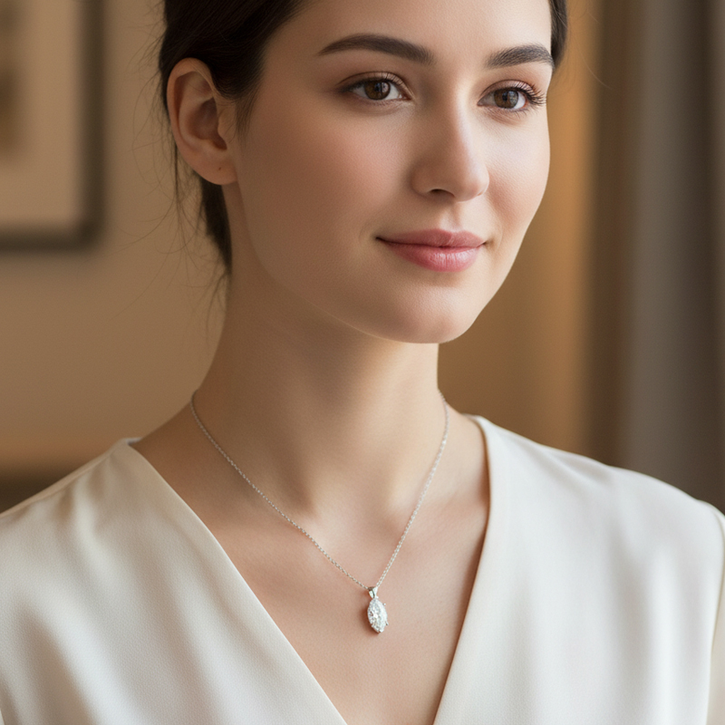 Marquise-Shaped Diamond Solitaire Pendant