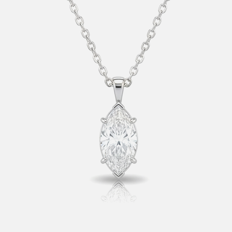 A classic marquise-shaped diamond solitaire pendant, crafted in 18K gold and set with a carefully selected GIA-certified diamond of 0.50 ct or 0.80 ct in F color and VS1 clarity, paired with a matching 42 cm 18K gold chain. A timeless design that highlights the diamond’s natural brilliance.
