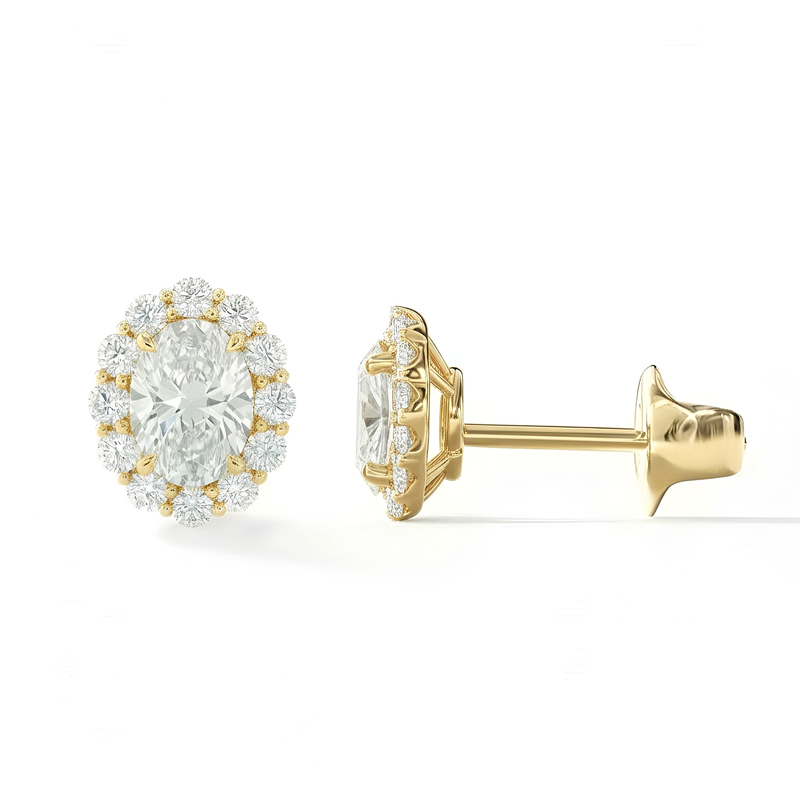 The Oval Diamond Halo Earrings are available in two size options, allowing you to choose the presence that best fits your style: