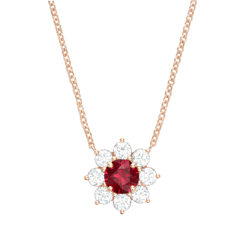Ruby Flower Pendant Necklace