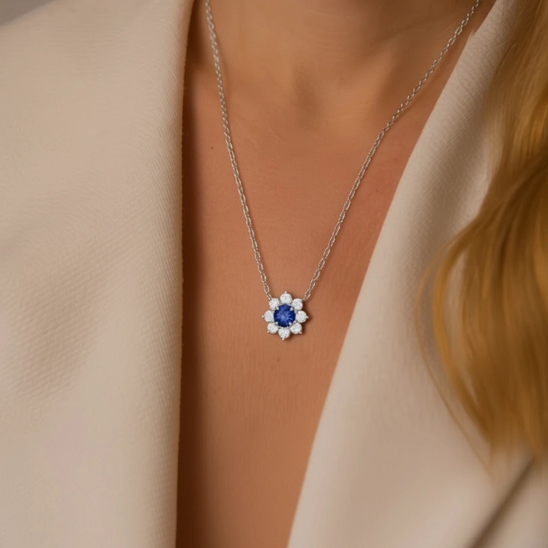 Skilled artisans handcraft the Sapphire Flower Pendant Necklace using traditional fine jewelry techniques. From gemstone selection to final polishing, every step is executed with precision to ensure long-term quality and a flawless finish.