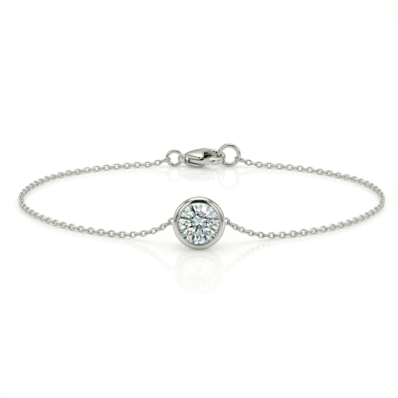 Solitaire Bezel Diamond Station Bracelet